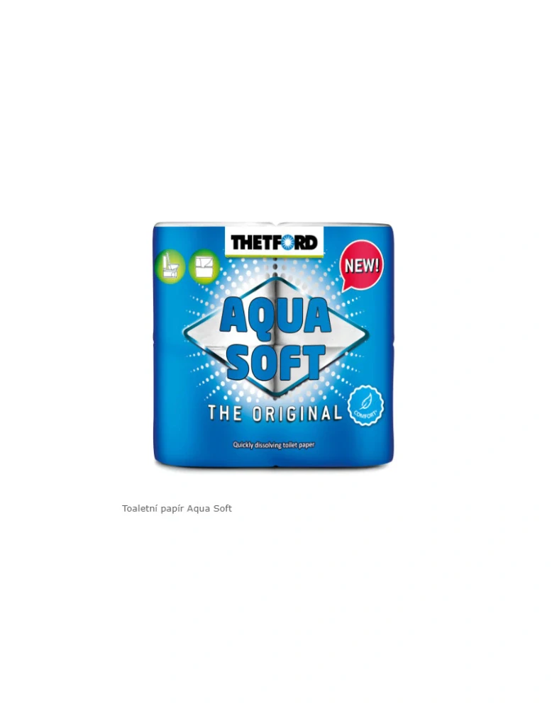 Thetford Aqua Soft je měkký toaletní papír speciálně navržený pro chemické toalety. Papír se ve spolupráci s rozkladovou chemií rychle rozpouští v odpadní nádrži a zabraňuje ucpání při vyprazdňování zásobníků.