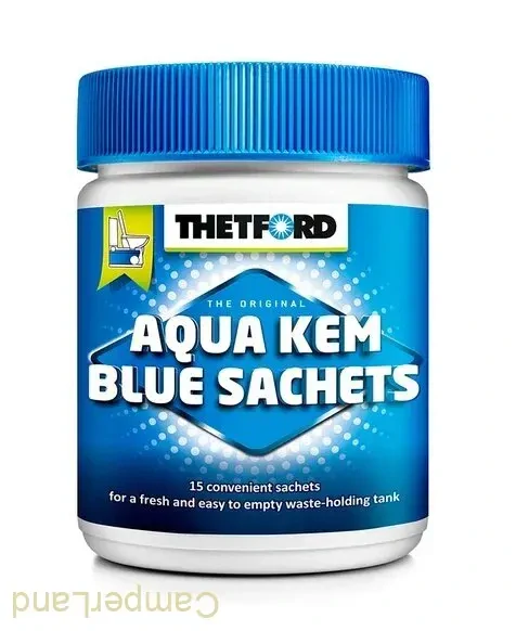 - WC chemie Thetford Aqua Kem Blue Sachets snižuje vytváření plynů v odpadní kazetě.